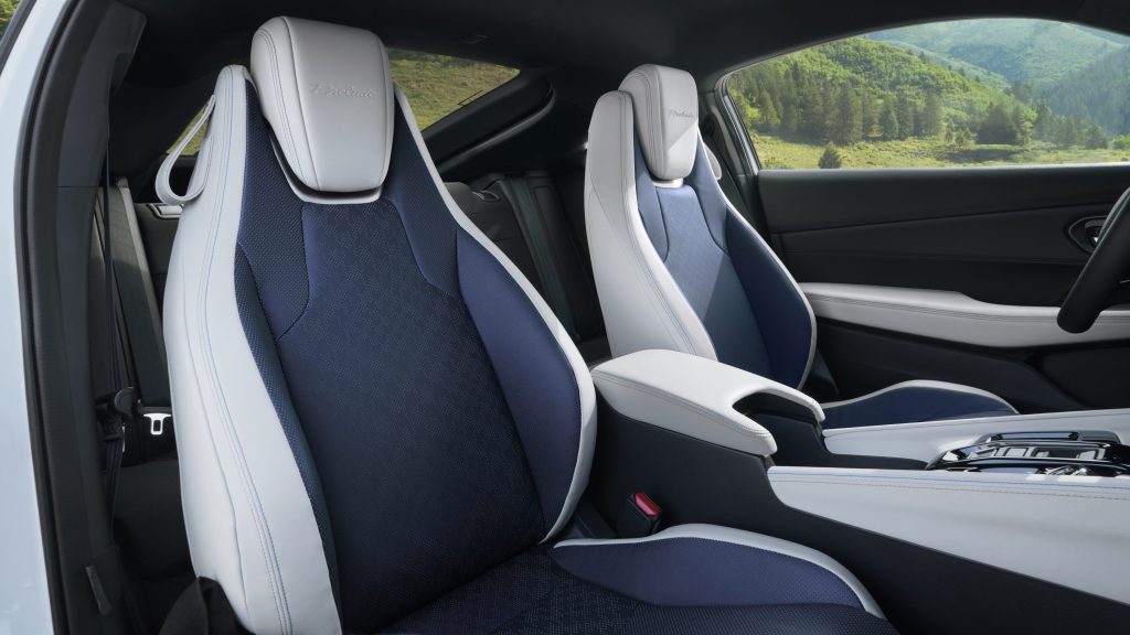 The Prelude interior mixes racing-inspired touches with luxury accents