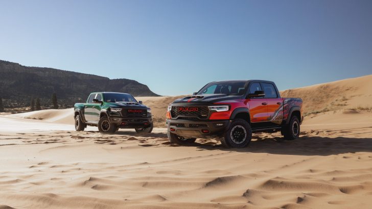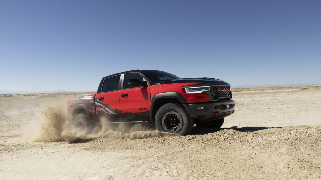 The TRX features the Ram Active Terrain Dynamics suspension management system that adjusts to stability control behavior and traction based on the different conditions. Ram says this system also adjusts the shocks in mid-air for a “composed landing” when hitting jumps.